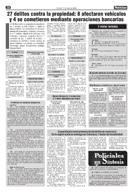 Ese día advirtió que su tarjeta estaba bloquea- de productores. señaló que en Salto ope- 27 delitos se cometieron en viviendas, co-