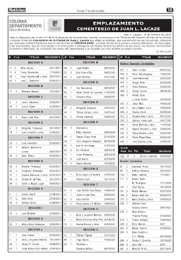 y Guarda Urnas del Cementerio de la Ciudad de Juan L. Lacaze que abajo se detallan, que ese derecho de uso ha vencido, debiendo