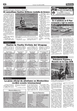 Leandro Rodas, Mar- timonel Sub 23. Vázquez: ORO - Doble par BRONCE - Remo adap- Comienza este fin de buenses Mauricio Gey-