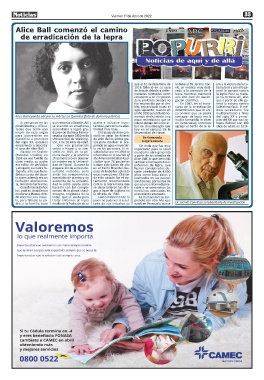 el caso de Alice Ball. volvió a Hawai y se con- lo en los pacientes. El re- importante para la salud