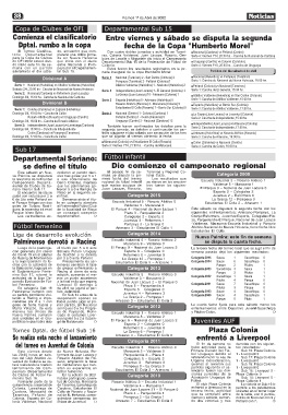 Este sábado en Nue- cedieron al partido deci- El pasado fin de se- Tarariras y Regional Co- Categoría 2009