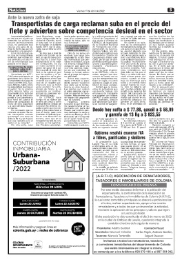 flete, ya que su precio res- tán desarticuladas. lización. Actualmente hay que cuentan con boletas carga respecto a las de- a los transportistas, más