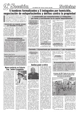 Se produjo un vuel- Como consecuen- un adolescente de 17 El Juzgado Letrado de En la investigación por la presunta comi-