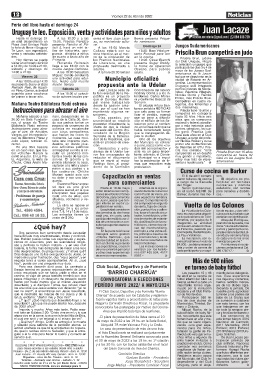 ¿Qué hay? sultor para aportar asesora- hibidores, elementos cla- unirá Juan Lacaze con Nue- decía: "es una actividad de-