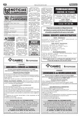 Farmacia y Dosis Unitaria, y disponibilidad horaria para trabajar en distintos Radicación efectiva en la zona de influencia de CAMEC-IAMPP.