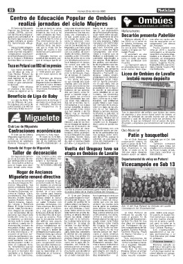 sioterapeuta, profesor de ofrece habitaciones do- ciclismo, fue algo fantásti- del Uruguay. La negocia- cia. Participaron los clu- final, fue justo ganador el