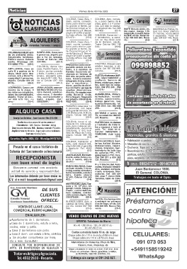 Granja Las Delicias - Juan Lacaze: Mes $13.000. 909.- (29-4) 237. Rosario.- (6-5)