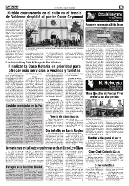rural los martes y vier- Reclamos por alum- Regina, este año se hará Será el domingo 14 de