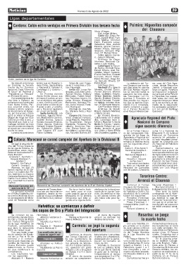 campeón del Torneo Aper- Se da un hecho histó- nia luego de la desvincu- to Integración de las ligas Independiente (Centro) 2