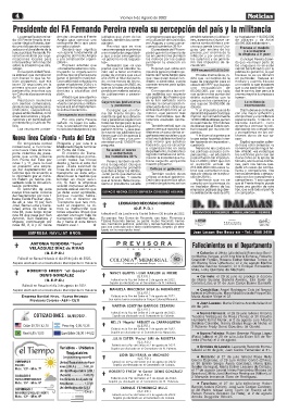 Nueva línea Colonia - Punta del Este tienen que vivir de apenas $ ganizaciones sociales y que lo que están haciendo lo es- chones duros de sus ca-