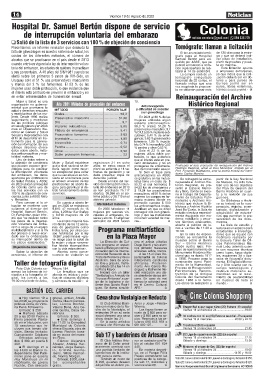 aportados por el Ministerio vierta en una barrera para denuncia judicial. es gratuito y en las mutua- Se reinaguró la sema- partir de la Ley Nacional