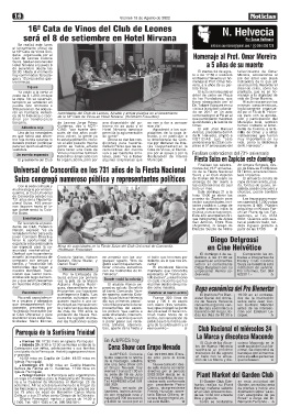 Recordó especialmen- muestras culturales enri- nia Suiza Nueva Helvecia Fueron 320 litros de estar Social del Ancia- dor de la institución