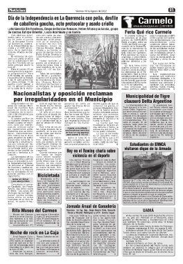 cipal de Carmelo han atrás, desde antes de colonienses.” concejal Miguelena dijo: Tigre clausuró a la em- nel Falcón informó que