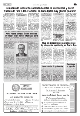 nes políticas en diferentes su inquietud a la Junta por de ruta 1 a la altura de Ria- mental, que permite devol- Departamental. Una, por la Plaza por contrato