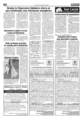 Esta convocatoria tie- granja. los servicios que brinda En el tambo, sustituir la Intendencia, Ing. Gonza- y 2 con tres estaciones de