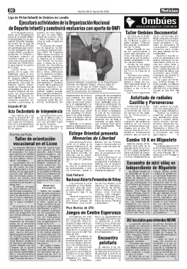 El 17 de agosto una co- práctica de otros depor- Taller Ombúes Documental