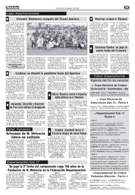 del Campeonato Departa- búes de Lavalle. sura que sigue comanda- En Divisional B se jugó Estudiantes El Colla (Rosario) vs Esparta (Helvética)
