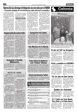 la actuación toda la no- ques, cuyo costo es de de Colonia (AJUPENCO). también se realizará la