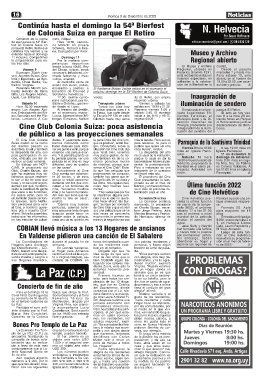 CIAS, la presidente del en las casas". remos al Cine Club". Deta- Pero a instancias de una Navidad en el salón pa- en Colonia Valdense. A