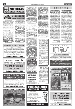 ving y churrasquera te- alquilo. Celular 094 29 quilo. Tratar Cel. 099 951 4586 3289. Juan Laca- ciendo conocer las causas.- proyectado denuncien por
