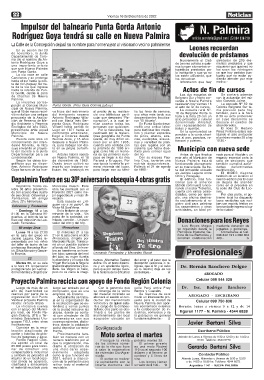 consideración. en Nueva Palmira, el 18 peos en llegar a los ríos Con su esposa Pau- este año el Municipio de espacio especial para la