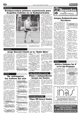 El joven de Ombúes ciembre a las 20:15 ho- perando en ambos jue-