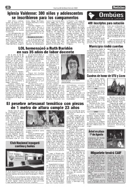 través de la zarza ardien- cada año nos ayuda, ella tado Mario Colman. "Pa- Cerro Largo y Artigas y