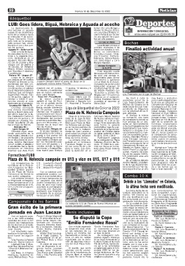 rebotes y brindó 4 asis- El único puntero unidades, lo siguen Biguá, Ambos finalistas habían Se llevó a cabo la muy bueno y productivo