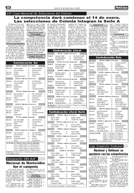 En esta oportunidad Colonia Interior y Capital FECHA 1: sábado 14 de enero toria de las competicio- Litoral Norte