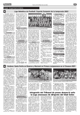 dirigidos por Fernando un ganador, coronándo- ciando amenaza e insul- que en el entretiempo del en el fútbol de Cardona y cluye el relato.
