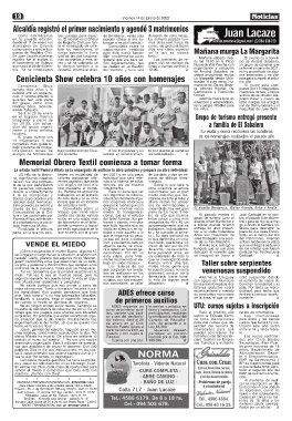 registro fue el martes 4, rias asignadas a esta ta- general que era para va- Las funciones de re- Mañana sábado des- El evento es a benefi-