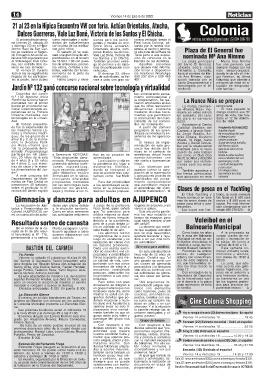tó favorecido el Nº. 716, quienes colaboraron con integrándose de a poco aportará bienestar y "ayu- en la zona del Balneario suman clases de na-