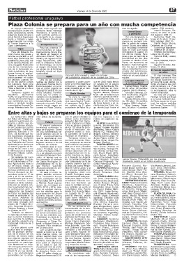 margo. Mientras tanto Fa- carrera en Plaza Colonia, procedente de Rubio Ñu y go donde jugó hasta el tero, 26 años: 16 partidos aportando 3 goles.