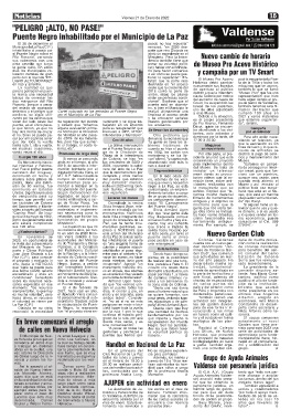 el río. Si no se puede pa- de Vialidad el año pasa- Intendencia y Municipio". Otro problema que domingos por la tarde, de