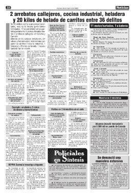 ban en el frezzer en un En la noche del mar- El ilícito se denunció El domingo 23 de tar- 24/1 Yumbo PX roja de casa en 25 de Mayo.