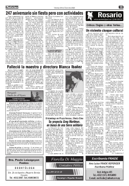 tituciones y manifestacio- traba la inauguración de fica que tanto en el pasa- años de Rosario.