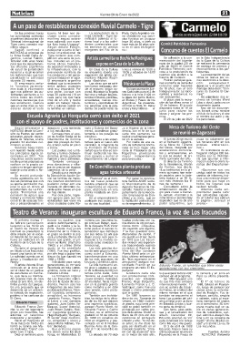 Según confirmó a para poner a punto la Ter- márgenes del Río de la na.- Concurso de cuentos El Carmelo