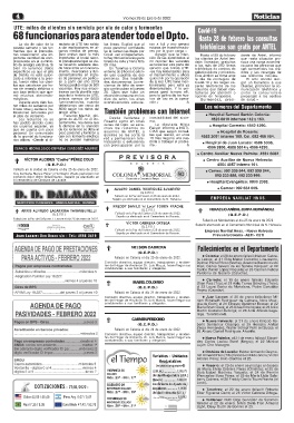 68 funcionarios para atender todo el Dpto. Hasta 28 de febrero las consultas