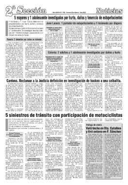 pardo rojiza en el piso. derecha. Quedaron alo- se requirió intervención interceptado en la mis- de moto hurtada Fueron conducidos a