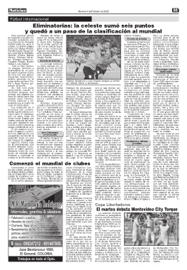 Comenzó el mundial de clubes resuelto. zona de clasificación di- más los cinco represen-