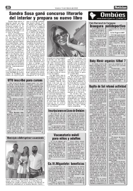 del campo y los peligros a un cuento que había escri- nes: la poesía y la pintura. tener un maestro que me Baby Mevir organiza fútbol 7