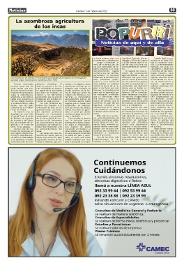 incas tenían una pro- rras cultivables un precio- ejemplo que todavía se gión si no fuera por dos climas que se hallan en- lizándolas.