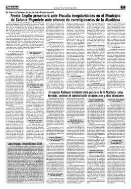 tomar cartas en este asunto y sunción de irregularidades y pio Municipio y el edil del Fren- tor de Tránsito respondió que Junta Departamental, lo que esa obra vinieron tres o cuatro