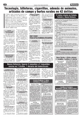 mana, con "destaque" de N. Helvecia con 9. de cigarrillos neda nacional y extranje- 11 motos robadas en Colonia,