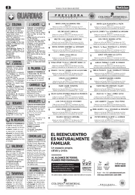 Farmacia: Borrás I (19 al 25/2) Dom. 9 a 12 y 16 a 20 hs. Sepelio ya efectuado en el Cementerio de Tarariras. Sepelio ya efectuado en el Cementerio de N. Palmira.