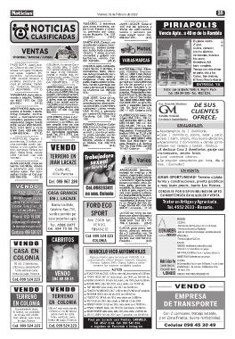 Cel. 093479889.- (11-2) dón a una cuadra de 18 de ral o Colonia. Cel. 099 530 puestos, vende Delgado Re- Tratar con su dueño Valdo A. Negrin Puch