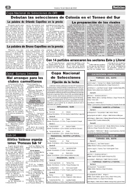 bes de Soriano Interior mira) 0 producirá el debut de Colonia enfrentando a San José en el Estadio Río Branco 1 – José Pedro Varela 2. Goles: Yonathan Sotelo (RB);