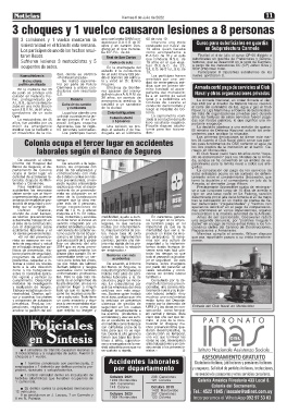 La motociclista, de 45 de del viernes 1º en Ge- Colisión afectó zada al conductor del auto das con fondos públicos, lo que significó una im-