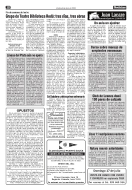 sa Efecon S.A., presidida trámites con Marina Mer- un globo que se le esca- un reconocimiento a las que se llama Juan Laca- pecies uruguayas; el ofi-