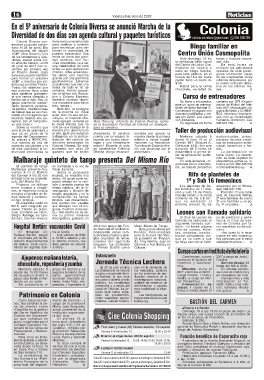 nuestras actividades y la Colonia Diversa. En este social.» Durante el acto Turística de Colonia ofre- Odriozola 434), con una visual, incentivos y fon-